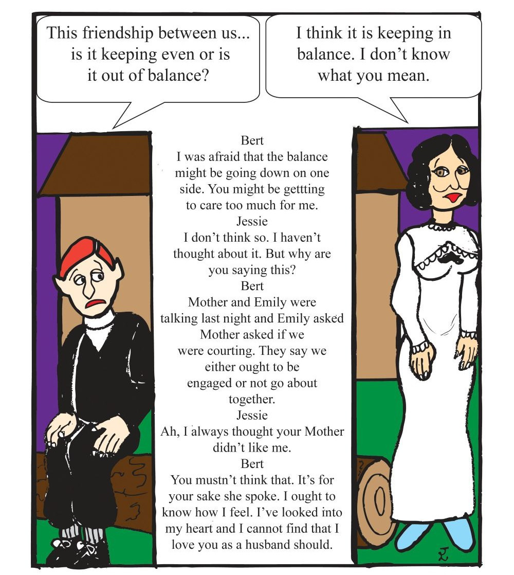 Here at the D.H. Lawrence Society we like to slow things down by producing one page of a comic per month. This is the latest installment of John and Justin Lapoint’s Jessie Chambers Story. For new readers, we’re on PTII page 4.